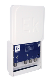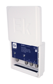 Amplificador de mástil con 3 entradas: VHF (47-230MHz) / UHF (470-694MHz) / SAT (950-2200MHz). G: 20dB (VHF) / 30dB (UHF) / -2dB (SAT). Nivel de salida (DIN 45004B): 112dBμV. Margen de alimentación: 12-24Vdc. Con paso de corriente DC en entrada SAT. Filtro 5G alto rechazo